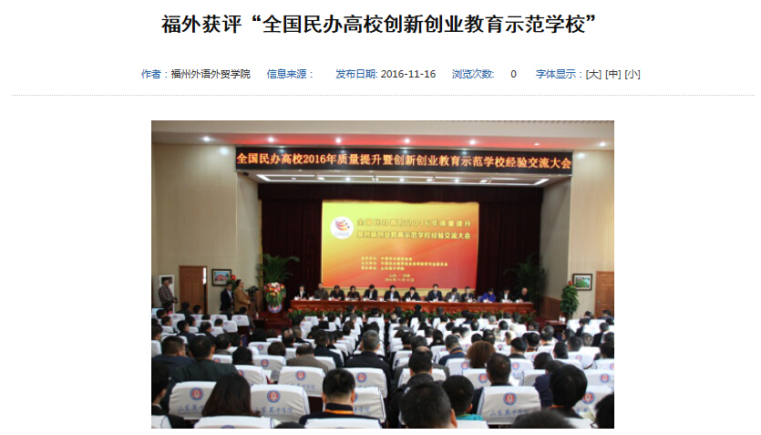 福建省教育厅报道:福外获评“全国民办高校创新创业教育示范学校”