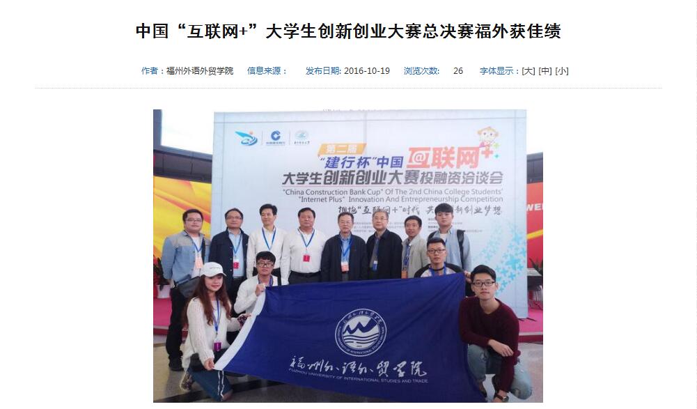 福建省教育厅网站报道:中国“互联网+”大学生创新创业大赛总决赛福外获佳绩
