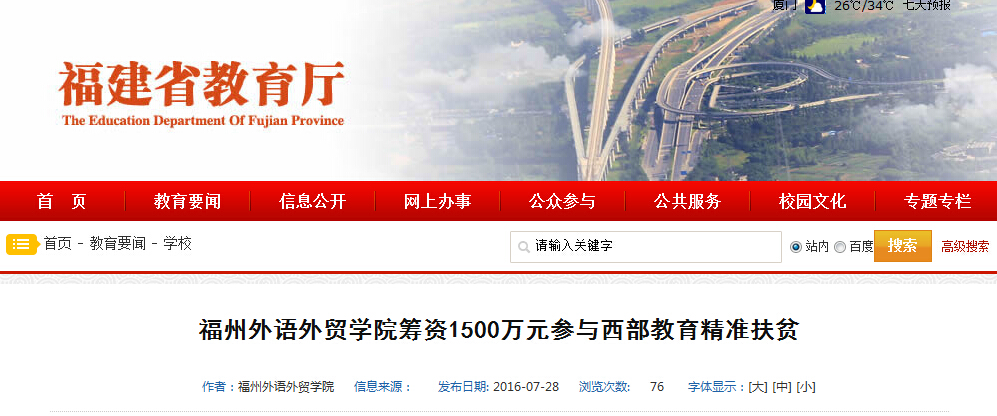 省教育厅网站报道:福州外语外贸学院筹资1500万元参与西部教育精准扶贫