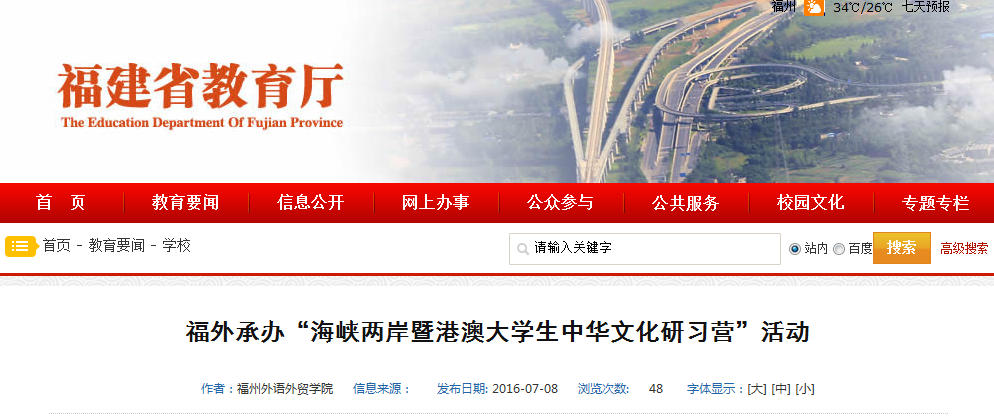 省教育厅网站报道:福外承办“海峡两岸暨港澳大学生中华文化研习营”活动