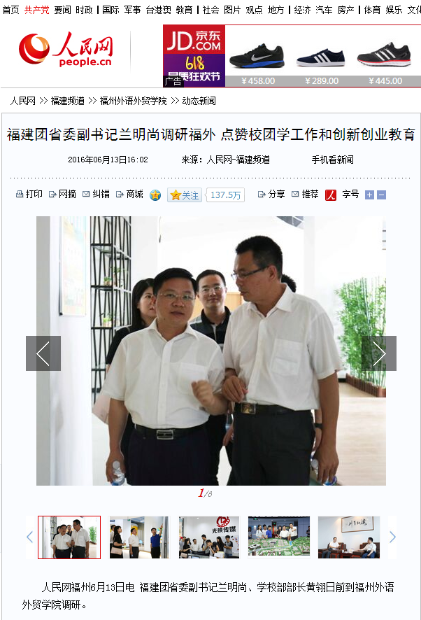 人民网报道:福建团省委副书记兰明尚调研福外 点赞校团学工作和创新创业教育