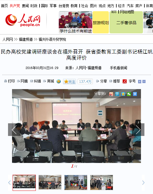 人民网报道:民办高校党建调研座谈会在福外召开 获省委教育工委副书记杨江帆高度评价