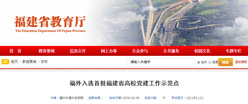 省教育厅网站报道:福外入选首批福建省高校党建工作示范点