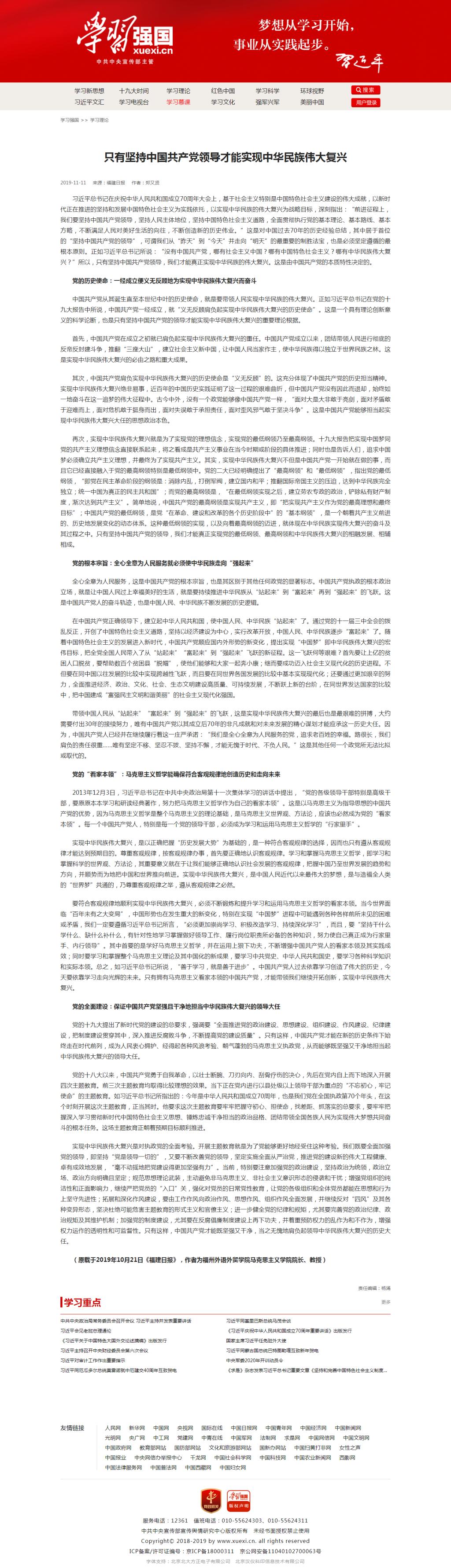 学习强国转载:只有坚持中国共产党领导才能实现中华民族伟大复兴
