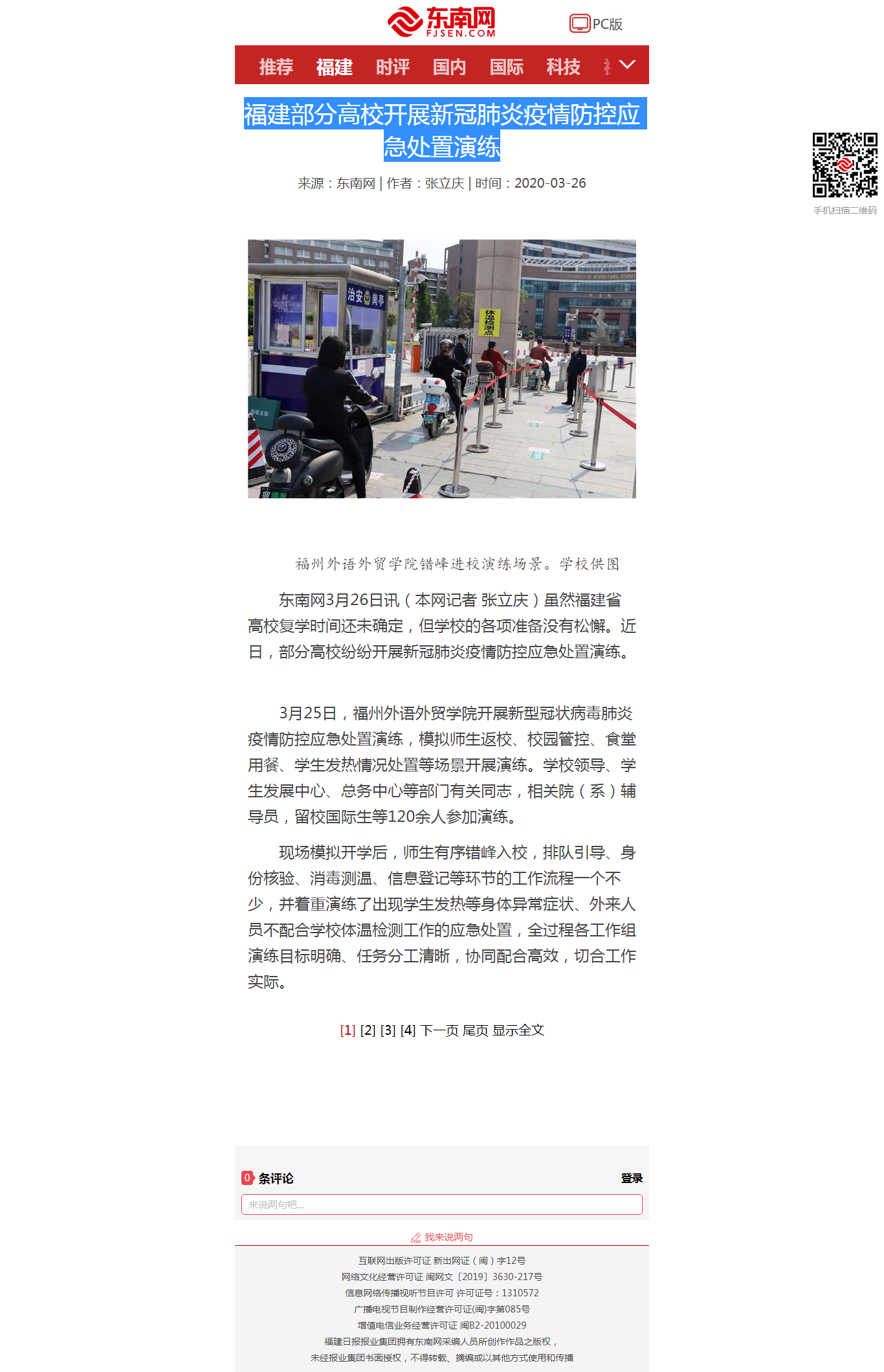 东南网报道:福建部分高校开展新冠肺炎疫情防控应急处置演练
