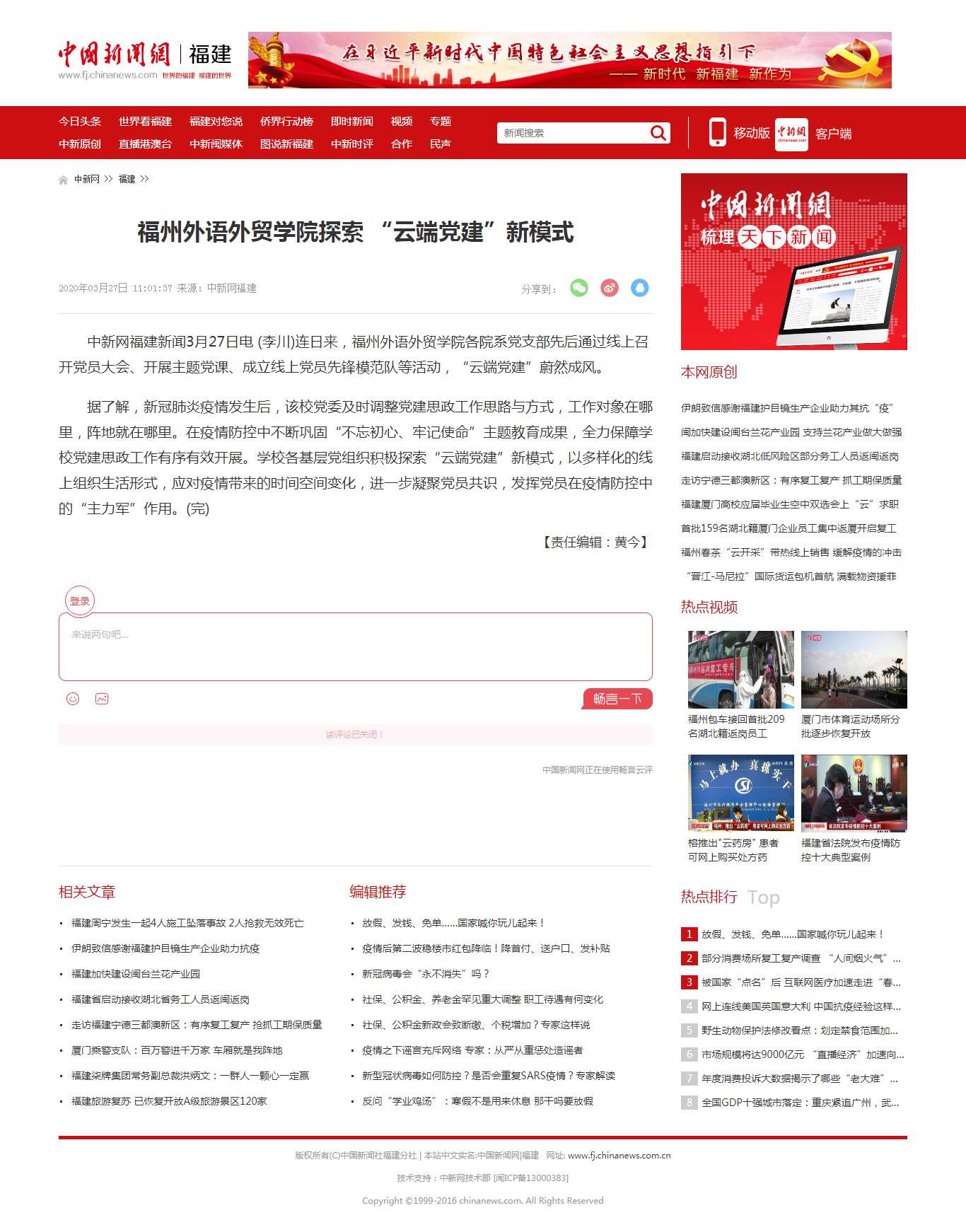 中国新闻网报道:福州外语外贸学院探索 “云端党建”新模式