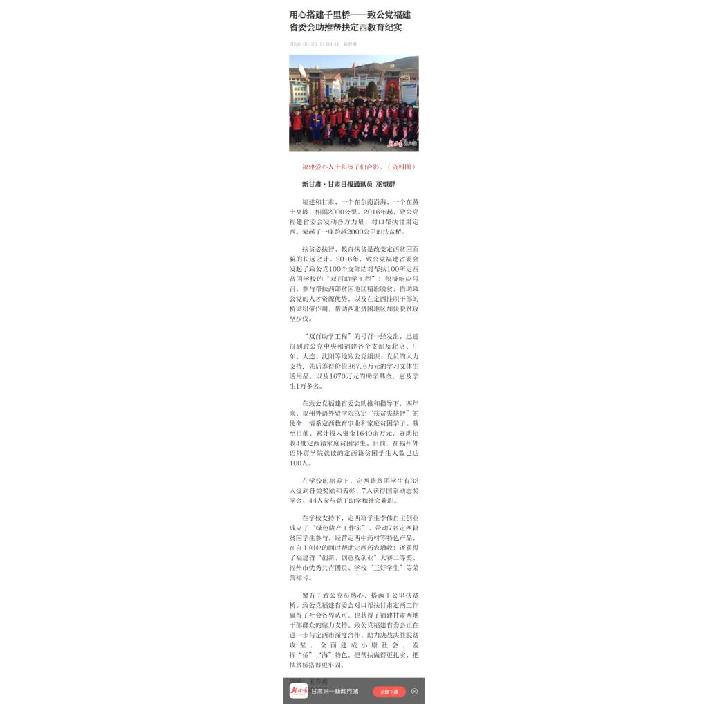 新甘肃网报道:用心搭建千里桥——致公党福建省委会助推帮扶定西教育纪实