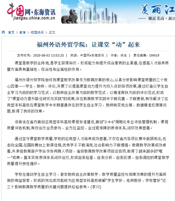 中国网报道:福州外语外贸学院:让课堂“动”起来