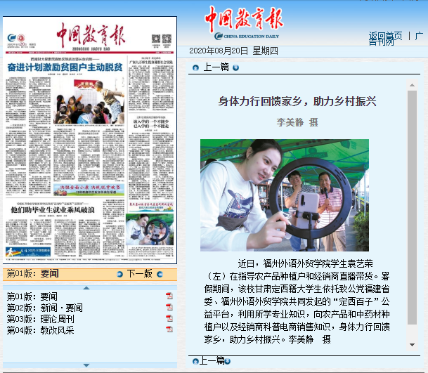 中国教育报报道:身体力行回馈家乡,助力乡村振兴