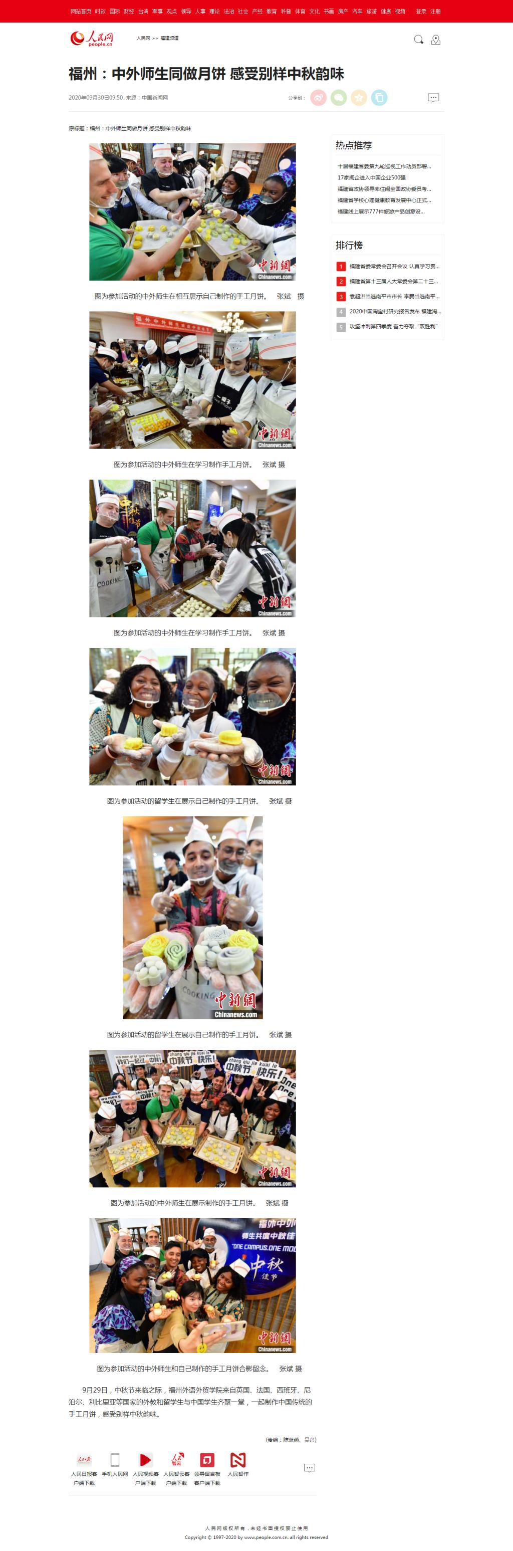 人民网报道:中外师生同做月饼 感受别样中秋韵味