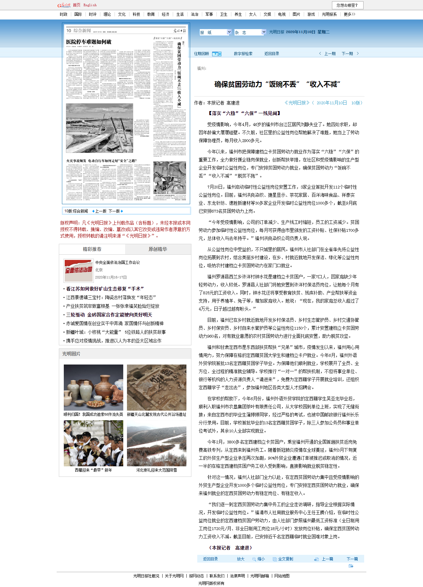 光明日报报道:确保贫困劳动力“饭碗不丢”“收入不减”