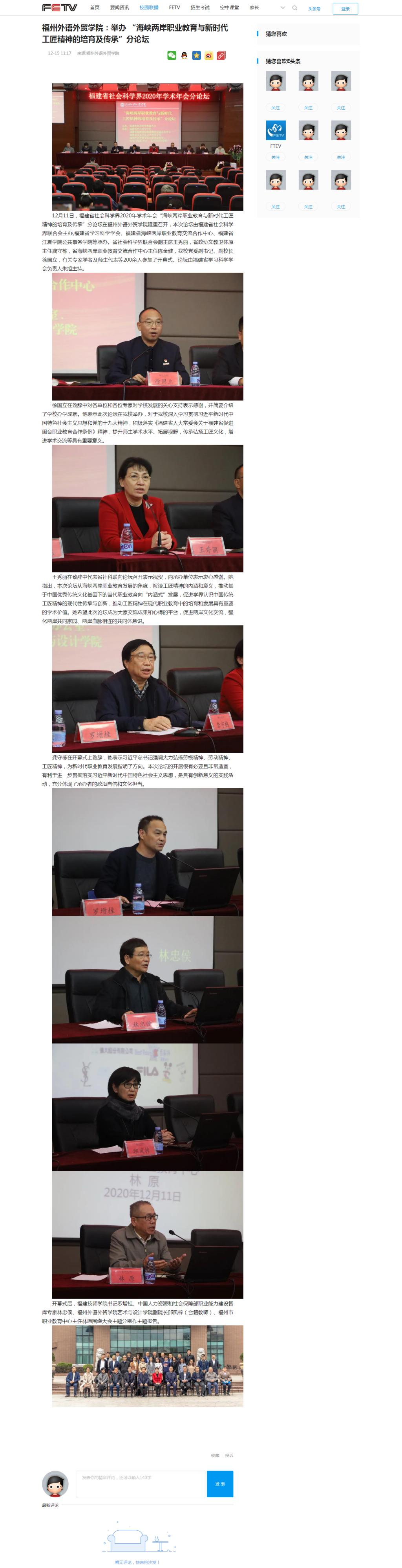 福建教育频道报道:福州外语外贸学院:举办 “海峡两岸职业教育与新时代工匠精神的培育及传承”分论坛