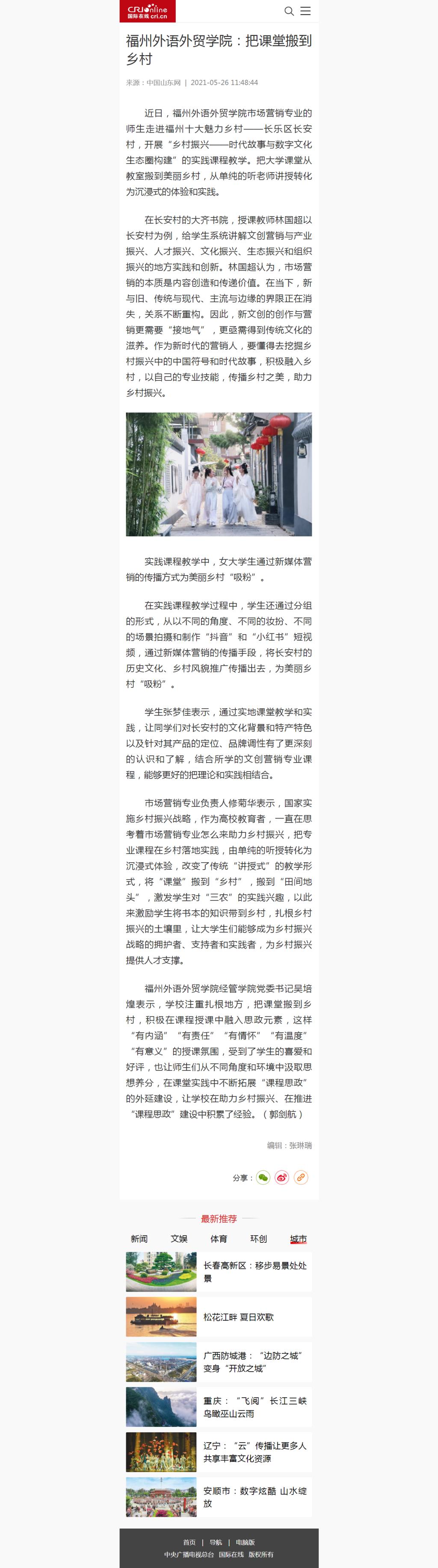国际在线报道:福州外语外贸学院:把课堂搬到乡村