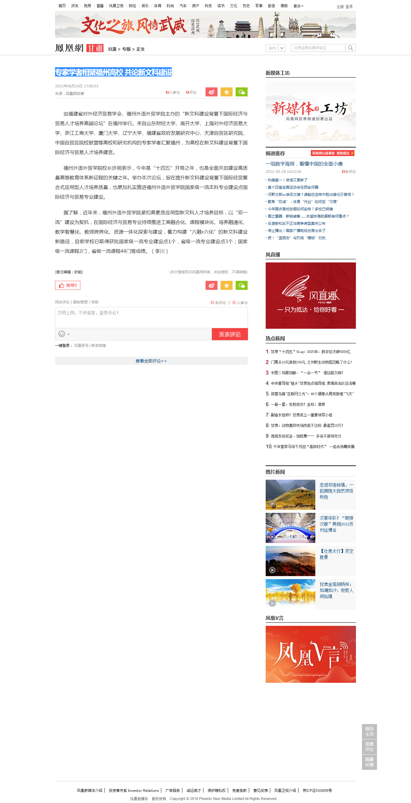凤凰网报道:专家学者相聚福州高校 共论新文科建设