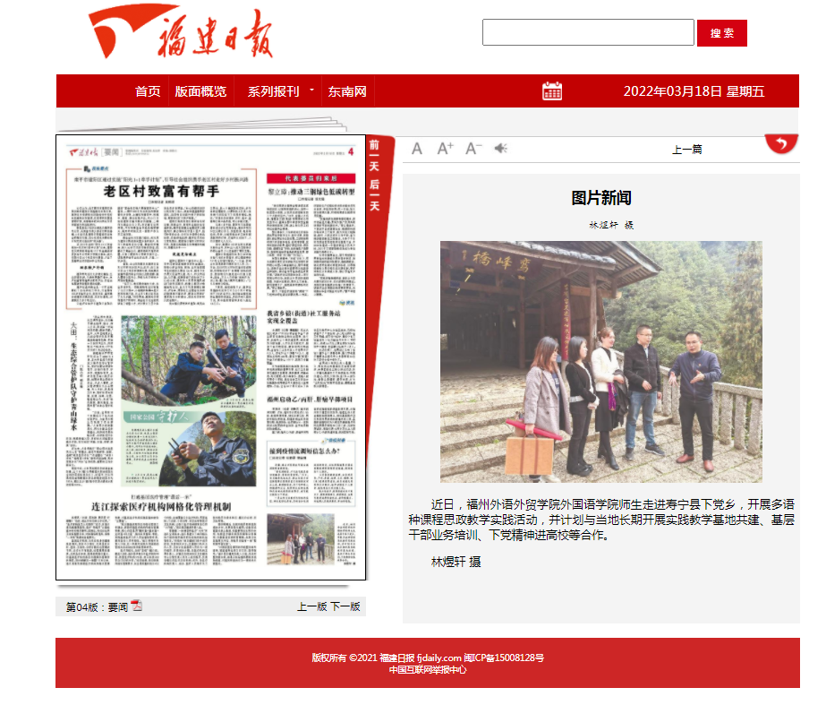 福建日报报导:走进下党开展课程思政教学实践活动