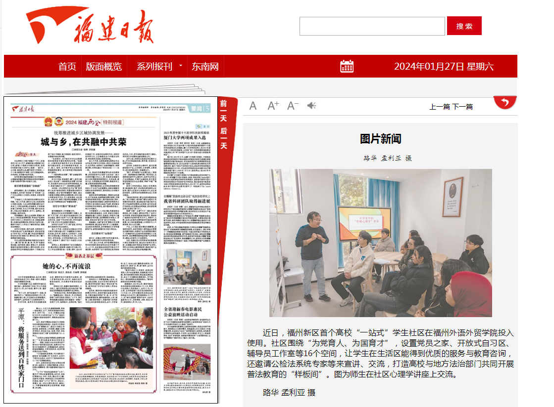 福建日报:福州新区首个高校“一站式”学生社区投入使用