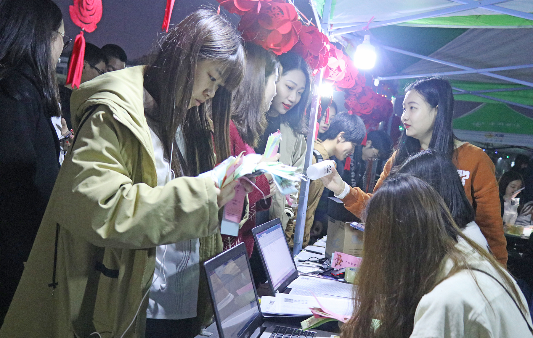 灯谜会现场,五颜六色的灯笼在夜幕下的操场上摇曳着亮光,吸引着众多师生前来观赏。本次灯谜涵盖了汉字谜、成语谜、地名谜、生产名词等,既具娱乐性,又充满知识性,共涉及谜面上千条。最后,共有6名同学脱颖而出荣获前三等奖,财金学院2017级金融学苏跃盛同学以猜对123条的数量获得本次活动的第一名。