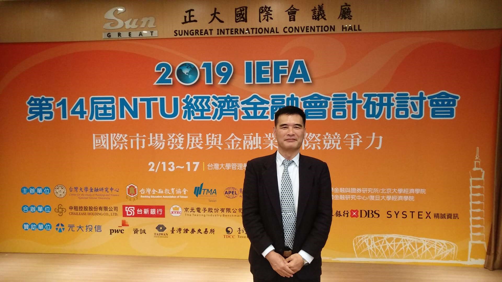 2月14-15日,2019IEFA经济金融会计研讨会在台湾大学管理学院召开,财金学院曹曾树副教授受邀参会。研讨会分为座谈会及学术发表场次,曹曾树担任“中美贸易战下两岸银行业、证券业的发展与挑战”与“金融业国际竞争力衡量与评比”等场次的主题与谈人。在学术论文发表场次,曹曾树以《基于创新金融战略下的银行内控与审计研究》为题,对论文的研究背景意义、模型构建、研究结果进行了精彩阐述,受到学者专家们的一致好评。