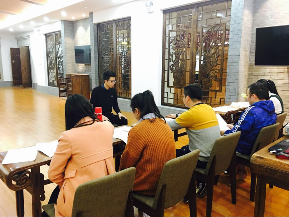 4月12日,金融系在学生发展中心中华文化馆举行大学生村官选拔模拟面试,学生发展中心副主任陈宏伟、金融系工作室主任林顺义及素质教师为该系进入大学生村官面试的同学们担任模拟面试评委。