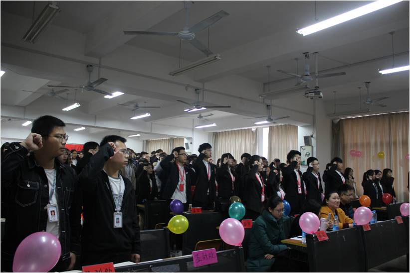 会议在全体与会人员起立庄严奏唱中国共青团团歌后正式开始,叶福兰与吴晓凯首先总结并回顾了团总支过去一年的工作,鼓励同学们在新学年的团学工作中再接再厉、勇攀高峰。接着,王欣对新一届学生干部进行职务任命并颁发相应聘书。随后,文艺部部长王志伟同学介绍了信息系团总支学生会的组织架构,学生干部代表团总支副书记张锋林同学进行发言。最后,全体人员进行庄严宣誓。