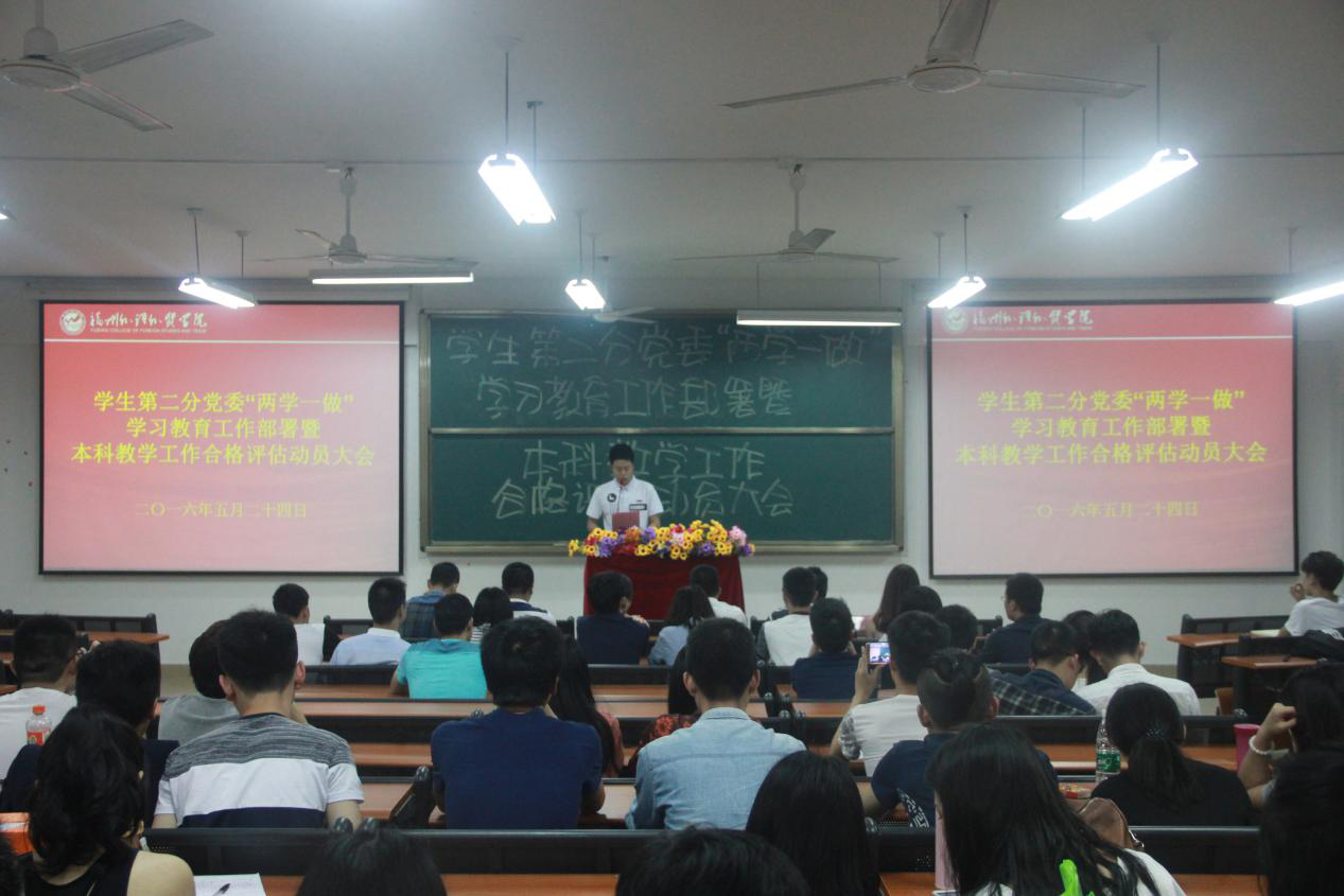 5月24日,学生第二分党委“两学一做”暨本科教学合格评估工作动员部署大会在北区实验楼3204召开。学生第二分党委书记林业铖、分党委宣传委员李祈丰、青年委员张亮、统战委员杨惠容、纪检委员何毅俊及各教师党员代表与学生党员参加了大会。
