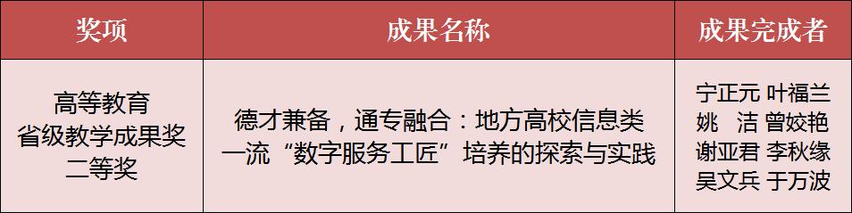 日前,福建省教育厅印发《开元网页版公布2022年省级教学成果奖获奖成果的通知》,我校大数据学院的《德才兼备,通专融合:地方高校信息类一流“数字服务工匠”培养的探索与实践》荣获高等教育省级教学成果奖二等奖。