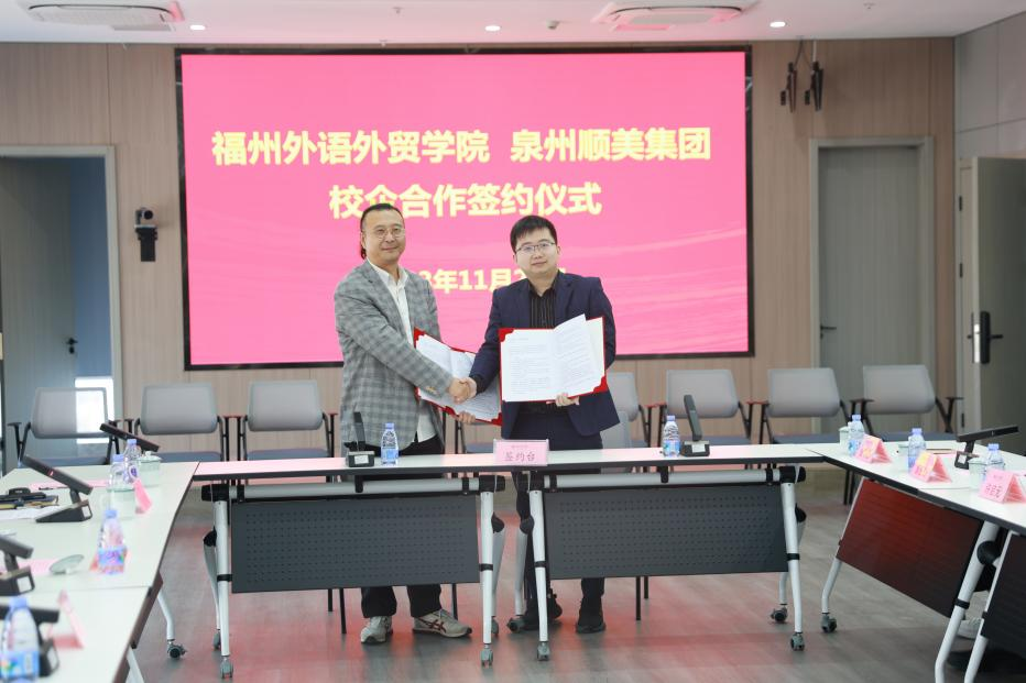 11月24日,我校与福建泉州顺美集团有限责任公司(以下简称“泉州顺美”)举行校企合作签约仪式。泉州顺美副总经理郑衍圣,我校执行校长黄建平,教学发展中心、艺术与设计学院有关同志出席。