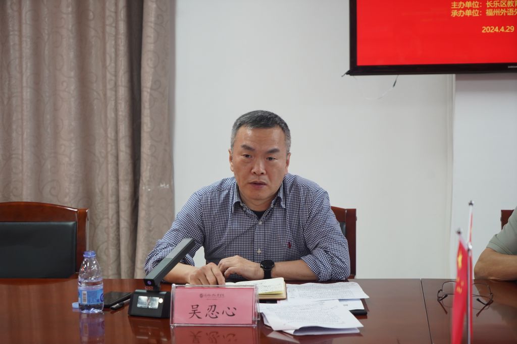 4月29日,长乐区大中小学思政课程一体化试点校工作推进会在我校召开。长乐区教育局教育督导室主任、区委教育工委委员吴忍心,五所试点校负责同志以及相关教师代表出席会议。会议由区教育局思政体艺科科长陈治顺主持。
