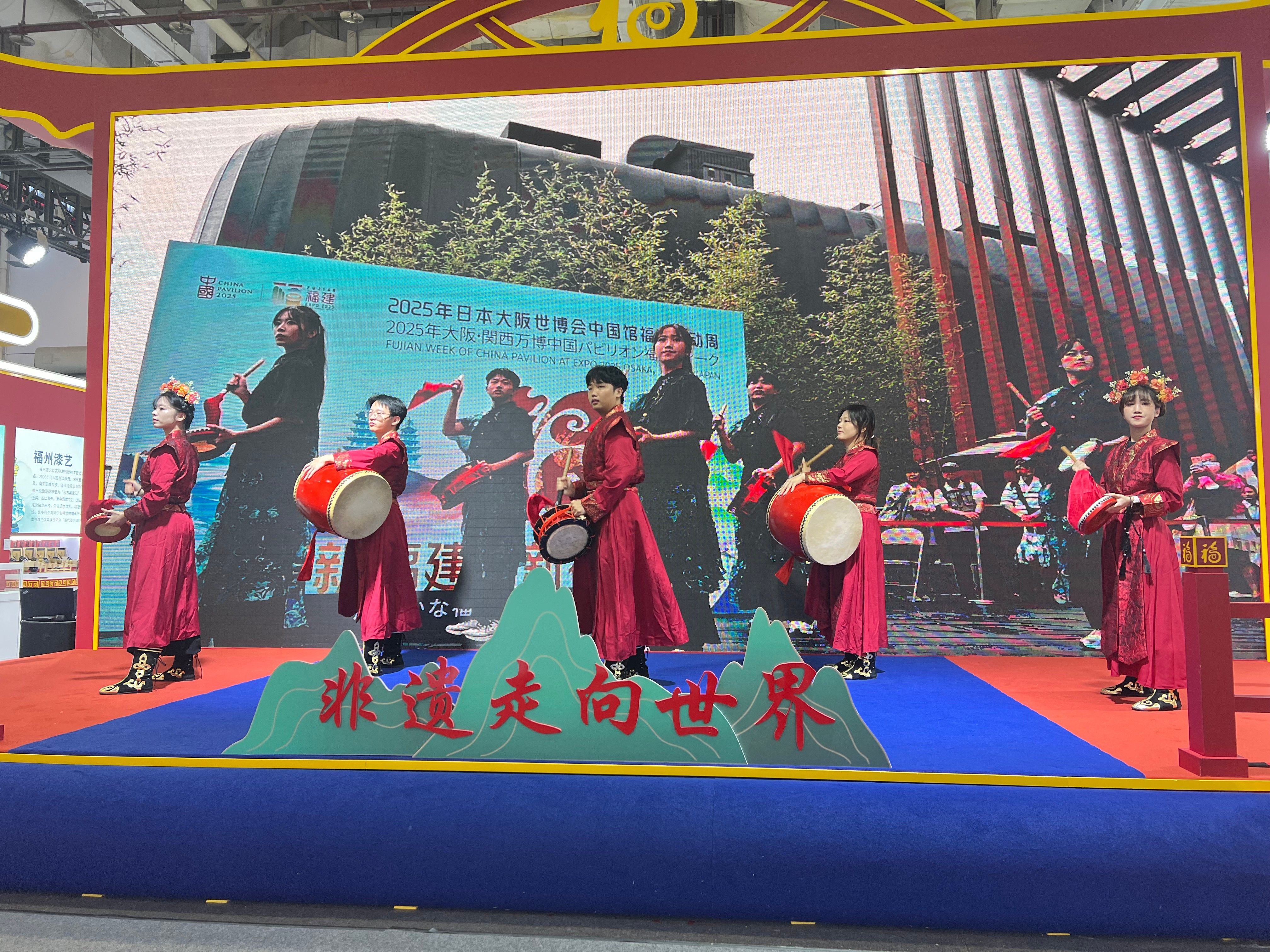 在福建省贸促会的邀请下,福州外语外贸学院“太狩”太鼓队(指导老师:曾凌云,学生:陈嘉道、吕文凯、王晗莹、林思琪、刘若希雨),惊艳亮相,以一场融合非遗与现代艺术的震撼表演《鼓簪共绽》,向世界自信展示福外青年的卓越风采,生动诠释了学校“外+”办学特色的丰硕成果。