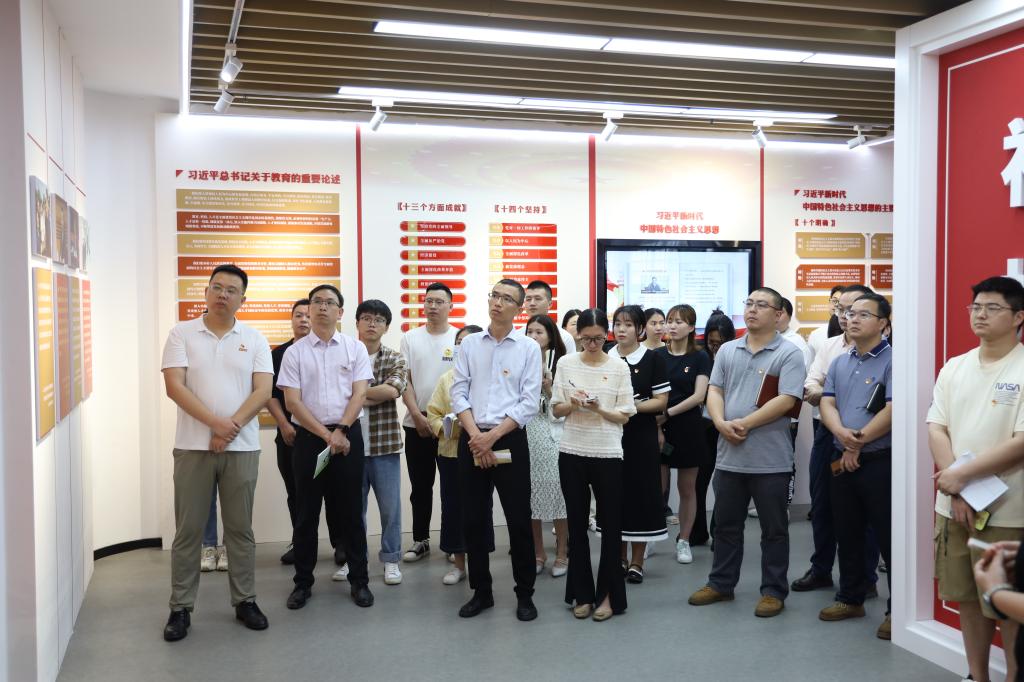 活动中,大家依次参观了馆内领航篇、领悟篇、百年辉煌、践行篇等内容版块。在馆内领航篇版块,大家通过诵读“十个明确”“十四个坚持”“十三个方面成就”等对习近平新时代中国特色社会主义思想进行了深入学习,并通过互动触摸屏查看习近平新时代中国特色社会主义思想的内容,进一步强化理论学习。在领悟篇版块,大家通过手机扫“有声图书馆”和“行走的图书馆”二维码,学习体验《党的二十大报告学辅导百问》和《习近平新时代中国特色社会主义思想三十讲》等电子书籍。