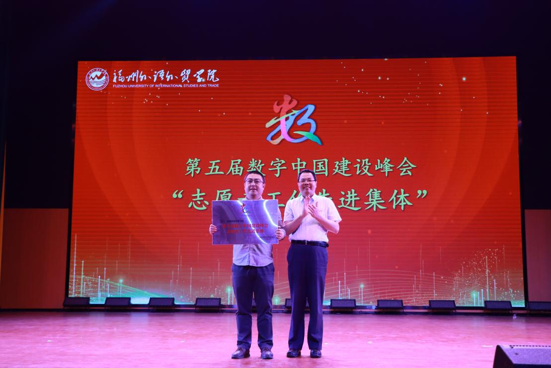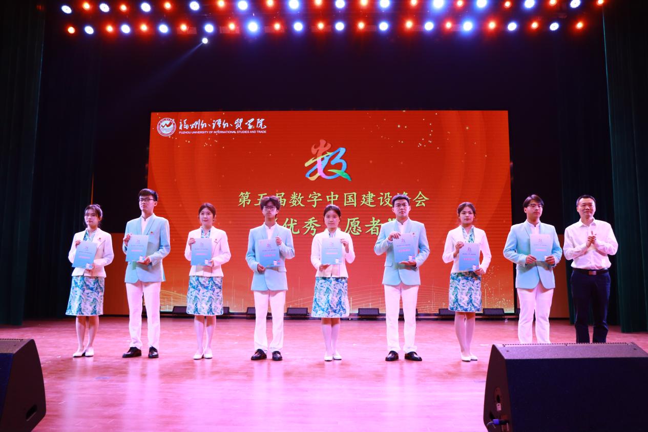 大会还对第五届数字中国建设峰会“优秀志愿者”“志愿者工作先进集体”进行了表彰。2021-2022学年国家奖学金获得者也上台领奖。