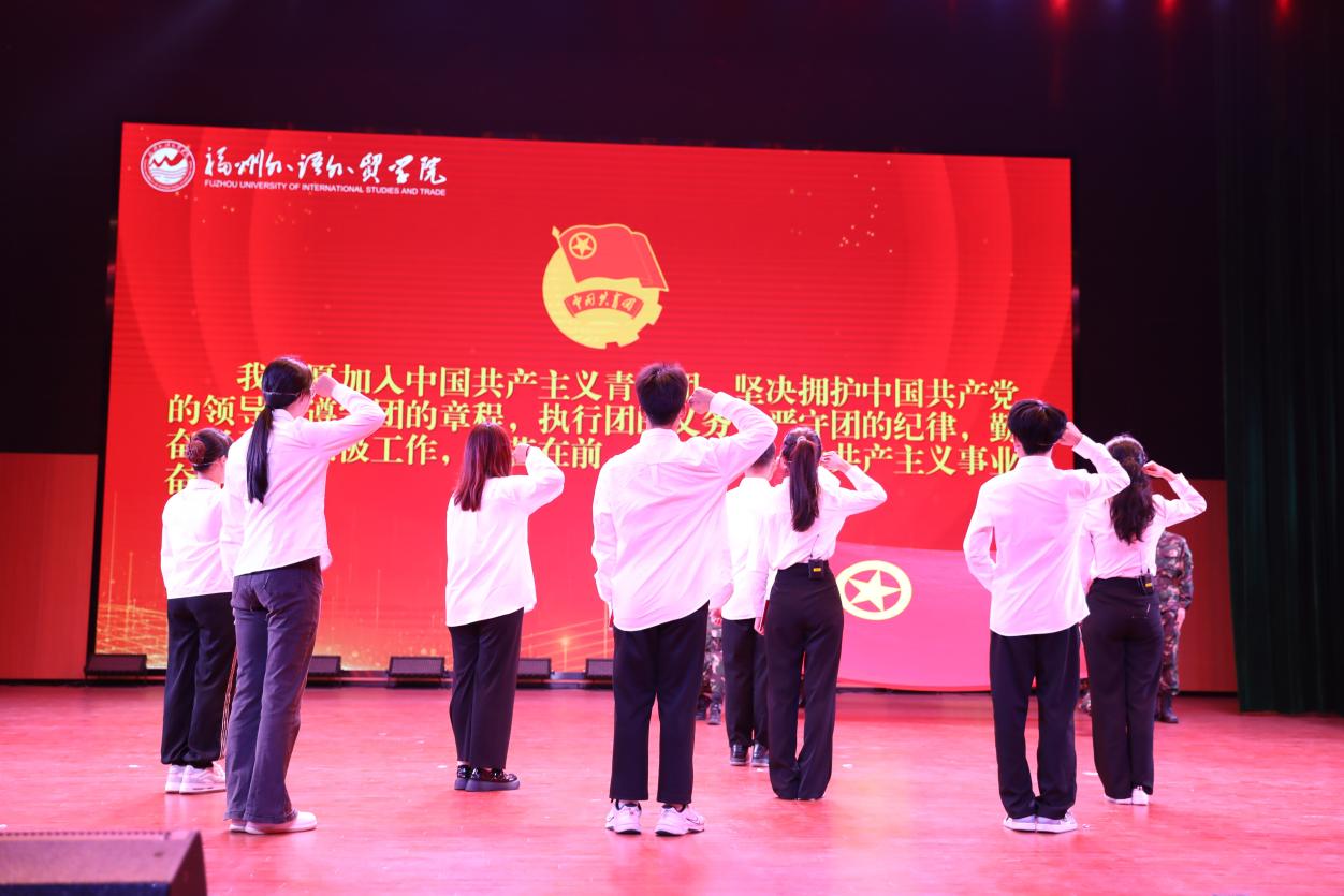 大会还举行了新团员入团仪式,校团委学生副书记李海洋带领新入团同学面向团旗庄严宣誓。