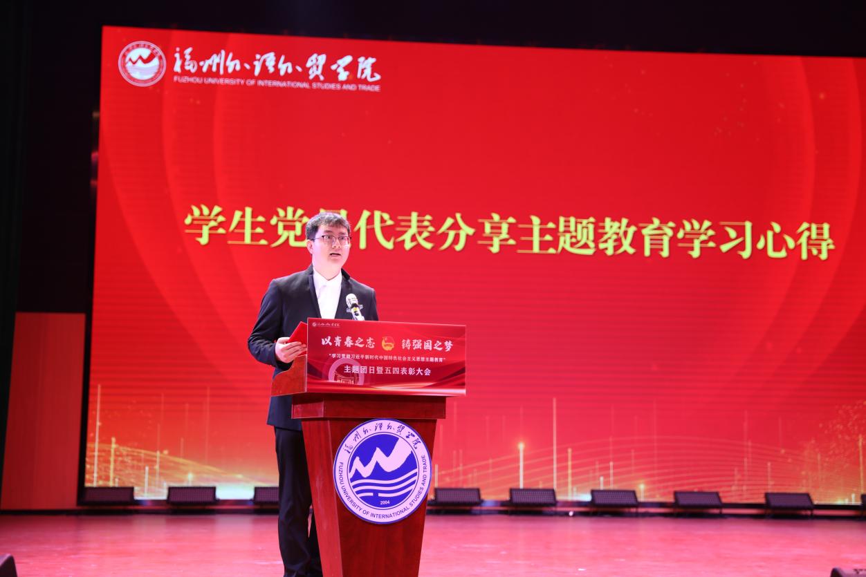 学生党员代表罗帅作主题教育学习心得分享。他从“在主题教育中升华对党忠诚的赤诚心”“在主题教育中磨砺担当作为的进取心”“在主题教育中永葆勤学求真的上进心”三个方面分享自己的学习体会。他倡议广大福外青年在学习生活中锻造“想干事”的理想信念、亮出“干成事”的奋斗底气、锤炼“能干事”的青春本领,让青春在实干中绽放绚丽之花。