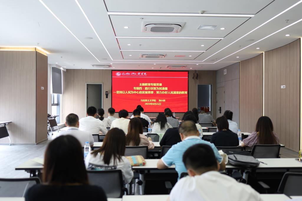 6月21日,我校开展学习贯彻习近平新时代中国特色社会主义思想主题教育专题读书班活动。马克思主义学院党委书记刘小利副教授以《践行宗旨为民造福—坚持以人民为中心的发展思想,努力办好人民满意的教育》为题,为党员干部作主题教育专题辅导报告。