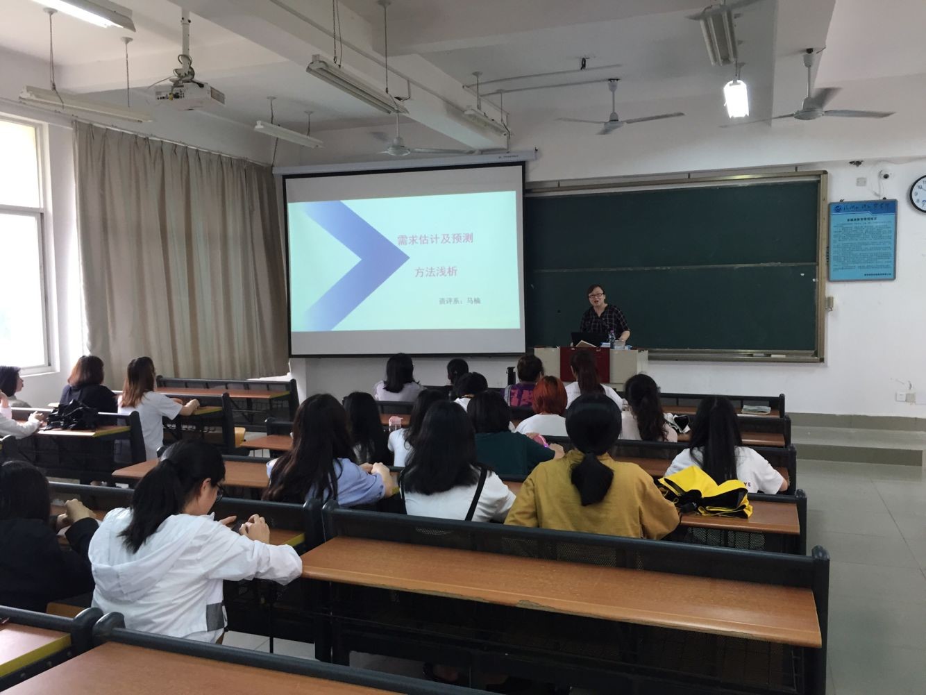 2019年4月23日,经管学院资产评估系老师马楠在西区教学楼3203举办了题为“需求估计及预测方法浅析”的讲座,2017级资产评估1-2班对此感兴趣的同学参与了本次讲座。