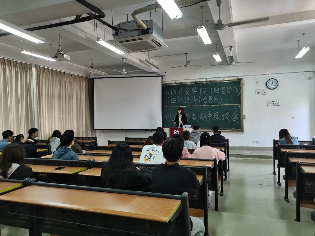 围绕期中教学检查工作,经管学院(国际商学院)于4月20日组织各系召开师生座谈会。校董事长助理、经管学院院长陈忠,学院副院长刘丹、副院长吴培煌出席座谈会,学院教学督导组成员、各系教师代表、学院教学秘书、各班班委及班级学生代表到场参加。