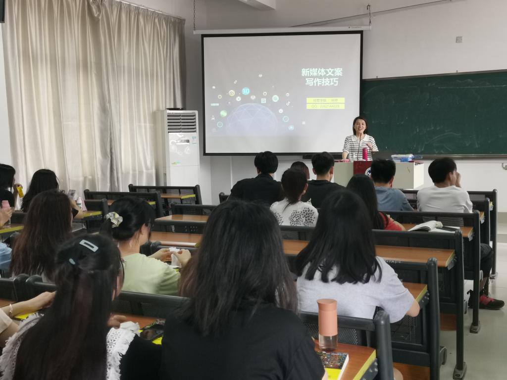 2021年6月1日下午,经管学院林婷老师在教2601教室开展“新媒体文案写作技巧”主题讲座,林婷老师介绍了新媒体时代文案创作与传播的特点,利用案例分析阐述了销售文案和品牌文案写作的区别,总结了新媒体文案创作思路与写作技巧。讲座现场学生积极互动,表现出较好的兴趣,是一场极有意义的专业讲座。
