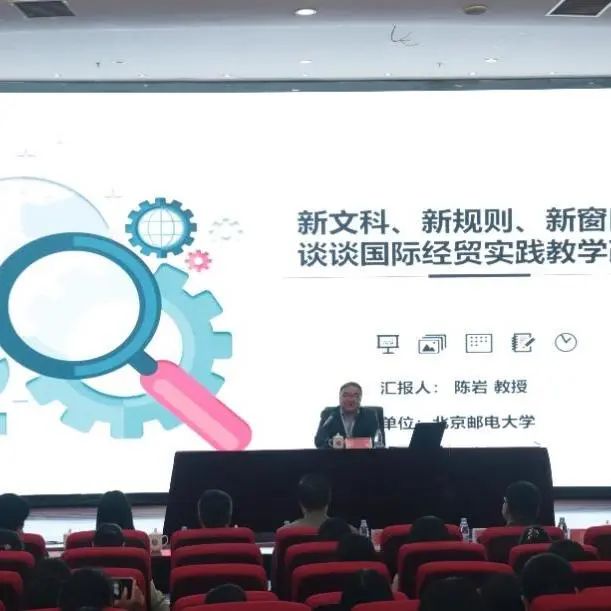 研讨会伊始,由中国国际贸易实务研究会学术委员会主任委员、北京邮电大学国际处处长、博士生导师陈岩教授作新文科、新规则、新窗口:谈谈国际经贸实践教学改革讲座。他从新文科视角下国际贸易虚拟仿真实践教学目标、教学思路和举措、单一窗口下的外贸服务变化、自主专利著作权与课程教学实践四个方面做了详细讲授和经验分享。