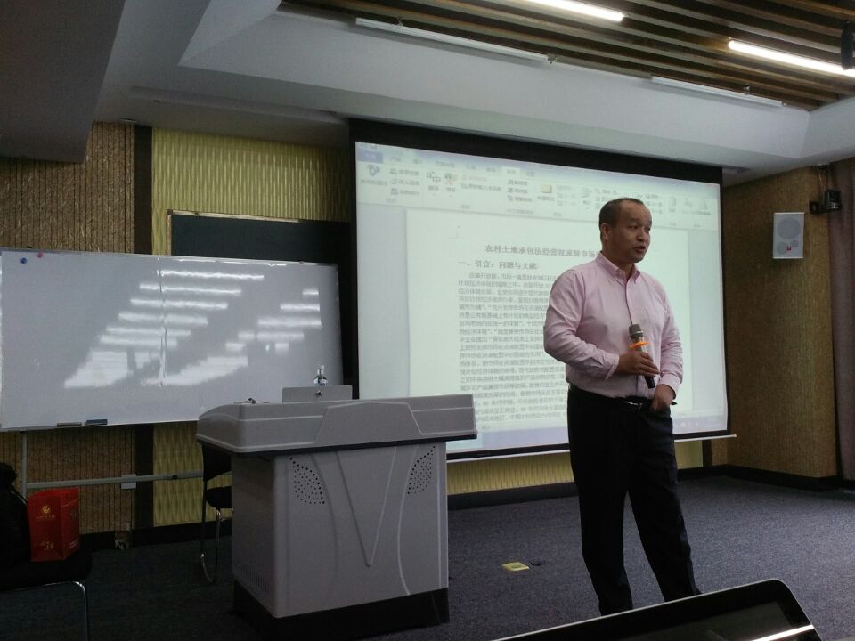 袁教授既是经济学博士又是法学博士后,长期从事农村土地承包经营权流转问题的学术研究,首先从新制度经济学的角度分析了农村土地承包经营权流转问题,讲述了我国自1978年改革开放后的制度变迁过程中的农村土地制度效率问题;其次从新古典主义经济学的角度分析了农村土地承包经营权流转问题,讲述了农村土地价格、交易成本、供求关系、非农化的经营收益等因素对农村土地承包经营权流转效率问题;最后从制度创新和资源配置的双重合力推动下探讨了农村土地承包经营权流转效率问题。