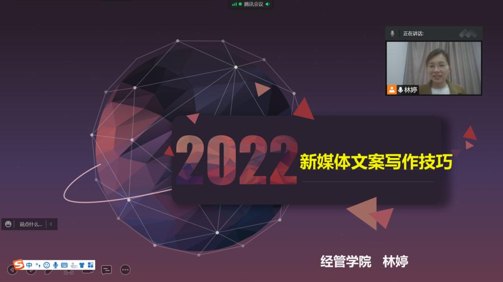 2022年5月17日下午,经管学院林婷老师在腾讯会议开展“新媒体文案写作技巧”线上主题讲座,林婷老师结合新媒体发展现状,剖析了新媒体文案传播的特点,通过案例展示爆款新媒体文案的特点,介绍销售文案和品牌文案创作的框架,总结了新媒体文案创作思路与写作技巧,本场讲座对学生进一步认知新媒体营销具有重要作用。