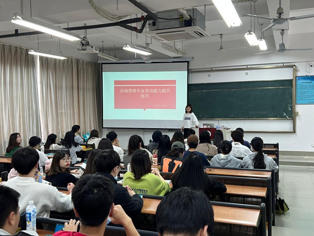 2022年4月21日星期四下午2点经管学院市场营销系卢曼雯老师在教3302开展了主题为“市场营销专业英语能力提升技巧”的讲座。市场营销21级的90多位学生积极参加了此次讲座。此次讲座主要从“听”“说”“读”“写”四个方面去教同学们如何在日常生活中提高专业英语能力。讲座中,卢老师用了生动有趣的例子让大家感受到了市场营销专业英语的魅力,也逐步消除了大家对英语的“惧怕”心理。期间,不少同学踊跃回答问题,整个讲座气氛热烈。这次讲座,引发了学生对英语学习,乃至生活中如何运用正确方法进行学习的深深思考,帮助大家建立学习英语的热情与信心。