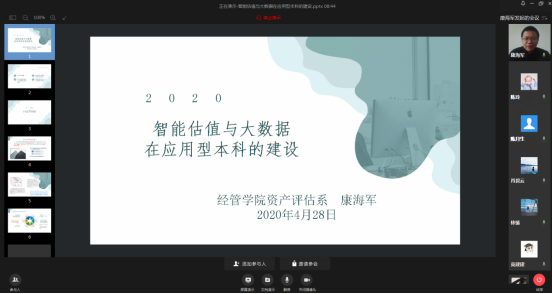 2020年4月28日下午,康海军副教授利用企业微信平台开展了题为“智能估值及大数据在应用型本科的建设”的线上学术研讨会,经管学院青年教师教师聆听了此次讲座。
