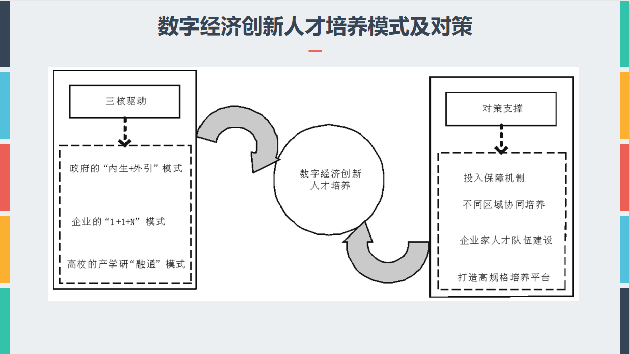 林国超老师从发展理念、基础与现状,数字经济背景下创新人才培养的新模式和教学设计三个部分展开讲座内容。未来的几十年将是促使数字经济发展繁荣的战略机遇期,也是数字化改造发展的关键期。数字经济基础部分目前呈现出增势稳定的局面,传统产业数字化转型的速度越来越快,其中融合部分已经成为增长的主要引擎。讲座首先从新发展理念,研究现状和国外数字人文课程设置情况做了总结介绍。接着,讲座详细介绍了发展新模式。一方面要对原有培养模式不断完善,另一方面还应当构建 “立体多元”的创新人才培养模式。主要包含:“内生 + 外引”培养模式,“1 + 1 + N”创新人才培养模式和产学研 “融通”培养创新人才模式三种。最后,林国超老师通过市场营销专业课程教学内容设计角度,对融入数字商务创新方面提了几点建议。
