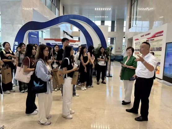 2024年10月15日下午,国际商学院国际经济与贸易系主任陈尘、专任教师穆晶璐带领2024级国际经济与贸易专业92名学生前往福建海狮集团有限公司海狮数智中心开展专业认知实践。
