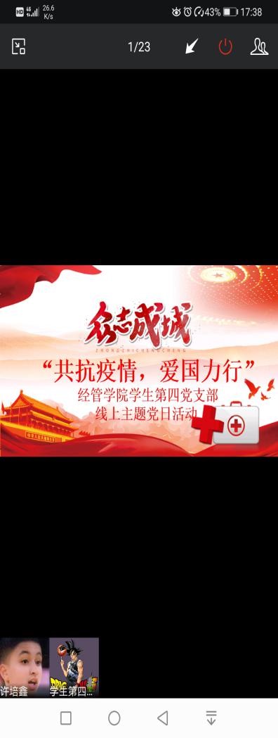 3月23日,为适应疫情期间防控工作要求,经管学院学生第四党支部通过微信语音会议的方式,开展“共抗疫情,爱国力行”线上主题党日活动。活动由支部书记郭兴主持,全体党员参与。