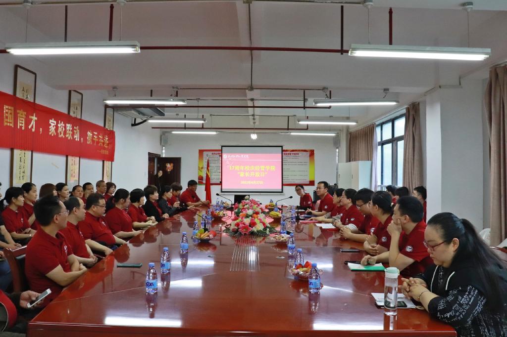 4月27日上午,经管学院(国际商学院)于行政楼B606会议室举办校庆周家长茶话会。福建致公经济研究院副院长、经管学院(国际商学院)副院长、教授刘丹,经管学院分党委书记、副院长吴培煌,各系主任、任课教师,全体辅导员及学生、家长代表共同参与。