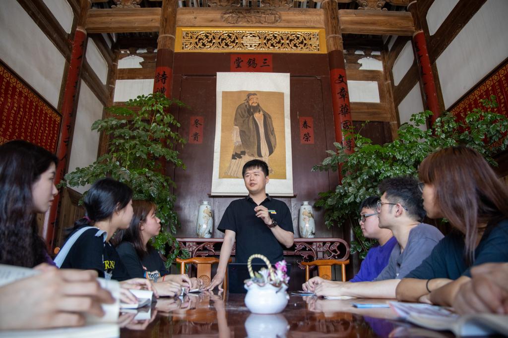 在长安村的大齐书院里,授课教师林国超以长安村为例给学生介绍了文创营销与产业振兴、人才振兴、文化振兴、生态振兴和组织振兴的地方实践和创新。他指出市场营销的本质是内容创造和传递价值。在当下,新与旧、传统与现代、主流与边缘的界限正在消失,关系不断重构。因此,新文创的创作与营销更需要“接地气”,更亟需得到传统文化的滋养。作为新时代的营销人,要懂得去挖掘乡村振兴中的中国符号和时代故事,积极融入乡村,以自己的专业技能,传播乡村之美,助力乡村振兴。