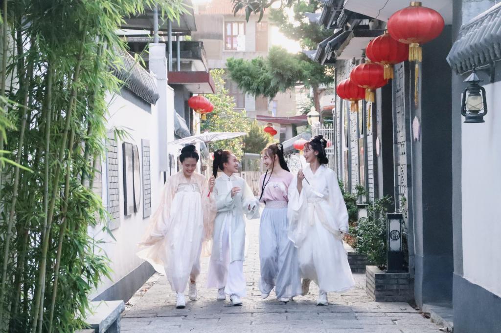 (经管学院学生着汉服,通过新媒体营销的传播方式为美丽乡村“吸粉” )