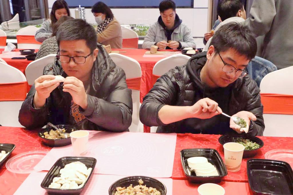 为保障活动顺利开展,教职工们早早就来到活动现场筹备各项事宜。活动现场,数十位老师分成十几组纷纷展现自己的“DIY”技能——一颗颗形状各异的水饺和一粒粒白白圆圆的汤圆挤满了整个餐桌。不一会儿,在云玺台社区工作人员的忙活下,新鲜美味的水饺和汤圆就浮出水面出锅了,大家在一片温暖融合、欢声笑语中品尝着热腾腾的水饺和汤圆,在这寒冷的冬天给大家带来浓浓暖意。