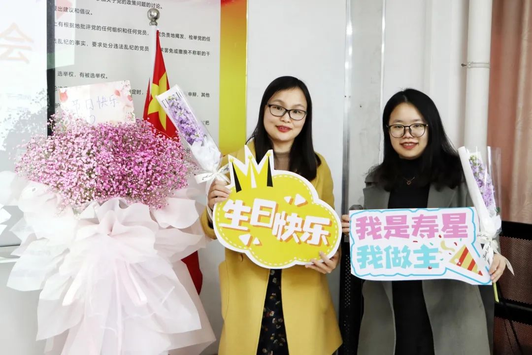 定格幸福,分享快乐,在早已布置好的生日会现场,准备了精致茶点、生日蛋糕、咖啡券和生日花(插图),老师们围坐在桌旁有说有笑,一张张灿烂的笑脸洋溢着幸福和甜蜜,伴着生日歌的响起,教职工集体生日会正式开始。